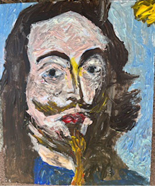 I would have gotten up to go, but that cannabis was strong. So I just sat on the couch for awhile. Charles the First took the opportunity to gather some paints and do a rendering of me.